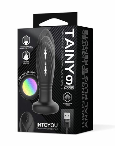 IY – Tainy – Stotende Buttplug met Ledverlichting en Afstandsbediening – Zwart